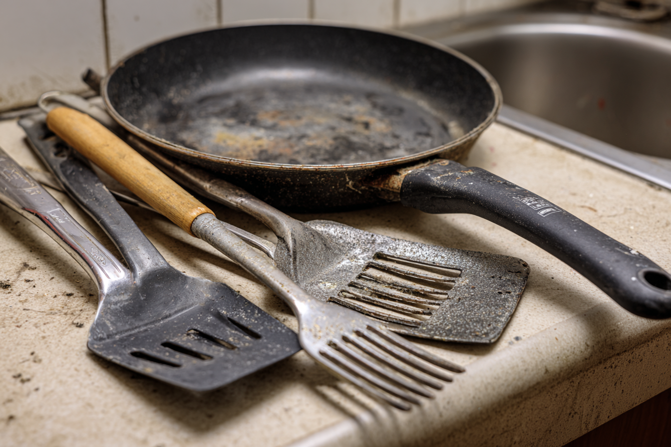 Heat-damaged utensils often have an odd texture or sticky feel that makes them unpleasant to use. Old utensils that are broken, melted, or rusty should be replaced immediately. Invest in heat-resistant silicone or wooden utensils that can handle high temperatures without melting or warping during cooking.