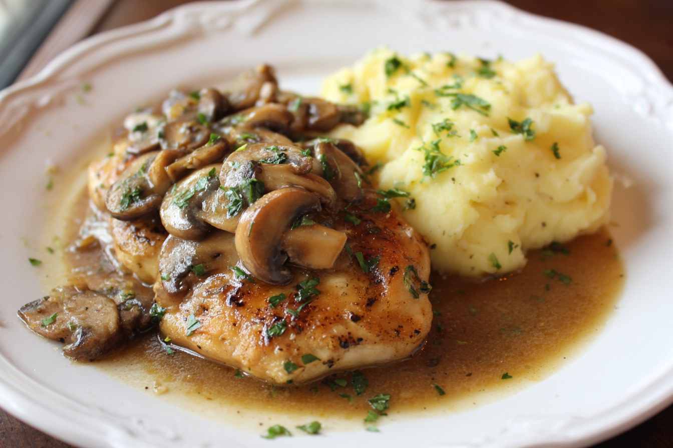 A: A thin sauce usually happens when the chicken isn’t dredged in flour before cooking, or when you skip the tablespoon of flour that gets added to the mushrooms. The flour is what naturally thickens the sauce as everything simmers together. If your sauce is already too thin, you can simmer it longer uncovered to reduce it, or make a small slurry with a teaspoon of cornstarch mixed with cold water and stir it in.